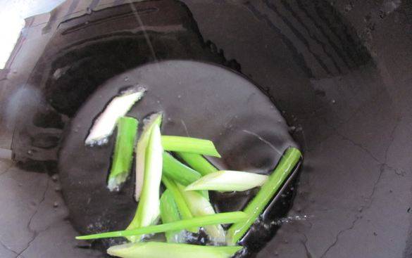 3、锅里放入花生油,烧热,放葱爆香。