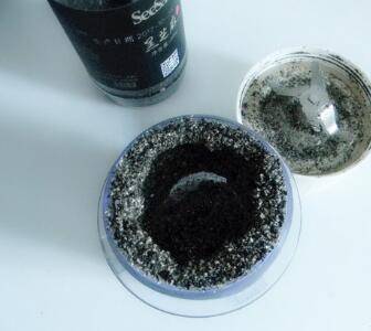 黑芝麻粉里放入糖和玉米油。