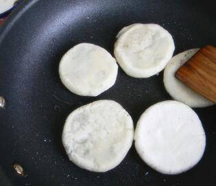 平底锅放油提前准备好,把包好的剂子直接放入平底锅里,慢慢拍扁成小饼状。