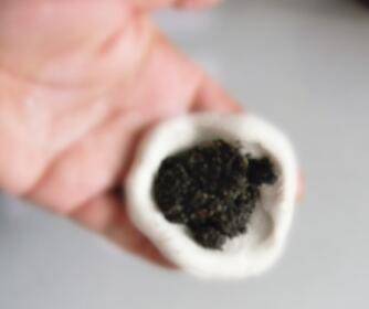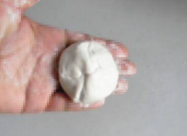 揪一块面团,直接用手做成的碗状,放入黑芝麻馅,嫌多勺可以调节,要外皮能包住即可。