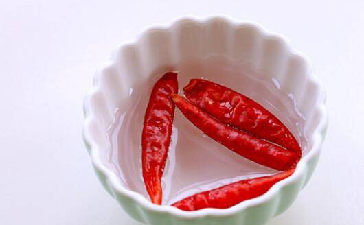 3、干红辣椒提前洗净后泡清水。