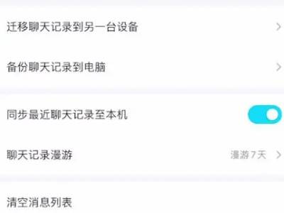 3、进入页面之后,打开同步最近聊天记录至本机后面的按钮,漫游的聊天记录就会恢复到本机。