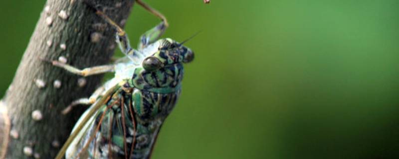 蝉的幼虫生活在土中,刺吸植物根部汁液,削弱树势,使枝梢枯死,影响树木生长。蝉的幼虫一生在土中生活。将要羽化时,于黄昏及夜间钻出土表,爬到树上,然后抓紧树皮,蜕皮羽化。夏天在树上叫声响亮,用针刺口器吸取树汁,幼虫栖息土中,吸取树根液汁,对树木有害。蝉也有不同的种类,它们的形状相似而颜色各异。蝉的两眼中间有三个不太敏感的眼点,两翼上简单地分布着起支撑作用的细管。蝉的家族中的高音歌手是一种被称作“双鼓手”的蝉。它的身体两侧有大大的环形发声器官,身体的中部是可以内外开合的圆盘。圆盘开合的速度很快,抖动的蝉鸣就是由此发出的。