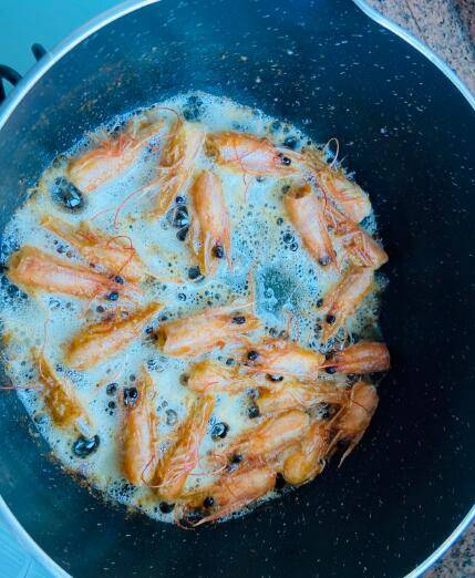 2、虾剥干净,放葱姜水里泡几分钟,捞起沥干备用。