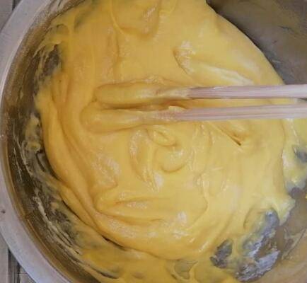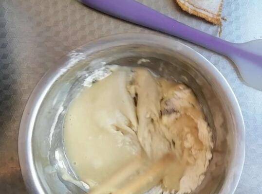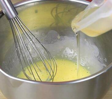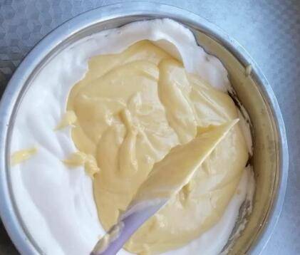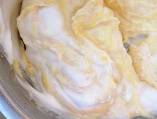 5、取蛋白,跟蛋黄糊混合,翻拌均匀,放烤箱烤15分钟即可。