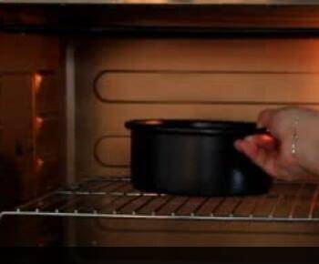 8、烤箱140度预热后,烤40分钟左右,具体时间根据自家烤箱适当调整,倒扣在晾架上,等凉透脱模即可。