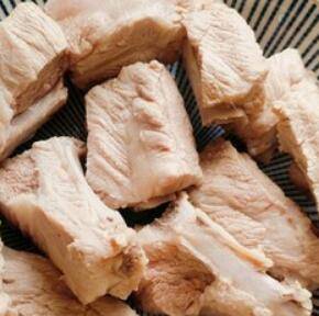2、将姜切片,排骨冷水下锅,焯水去腥去血沫。
