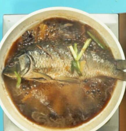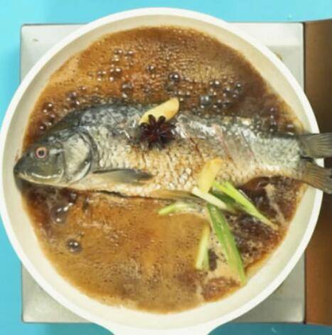 1、准备食材:鲤鱼1条、姜5克、葱5克、食用油10毫升、八角1个、老抽5克、盐2克、白砂糖2克。