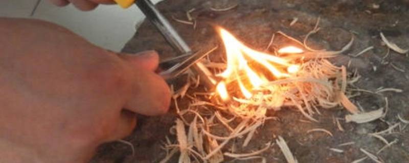简易刨子取火法。将软质木板挖一长槽,槽的前方放置易燃火绒,用较硬木条向前推动,直到火星将火绒点燃。