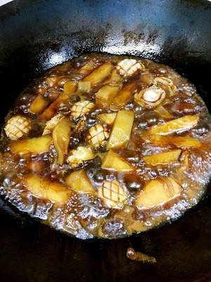 9、加入鲍鱼、盐、糖调味,继续炖5~8分钟。