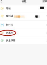 3、接着在“钱包”界面中会出现“亲属卡”的功能,点击进入。