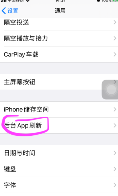 在设置中找到通用,进入通用,找到后台App刷新;