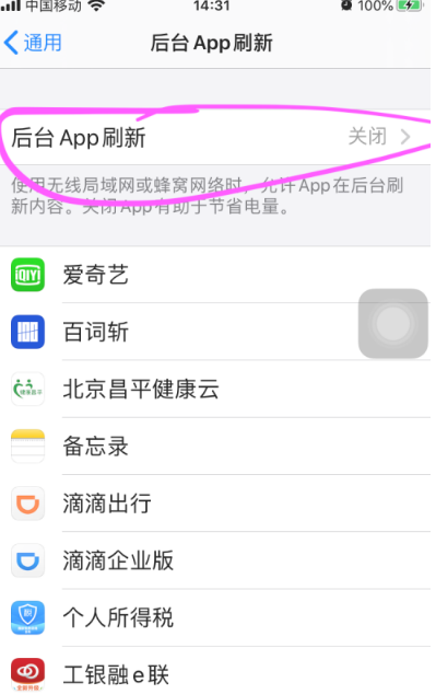 进入后台App刷新,关闭此功能;