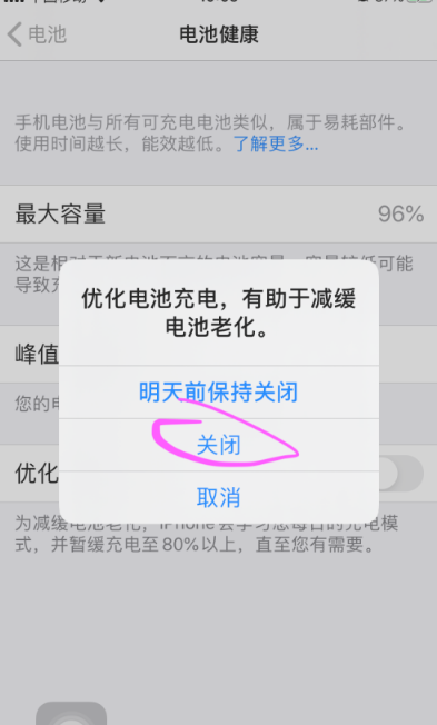 优化电池充电功能关闭,不利于电池长久使用;