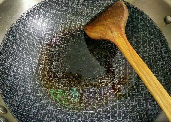 7、热锅倒入适量植物油烧八成热,放入大蒜爆香。