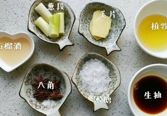 准备所需材料,用了一点自己酿的石榴酒,其实用黄酒比较好。冰糖提前放保鲜袋里用擀面杖轻轻敲碎。喜欢桂皮或者香叶的味道也可以加点,我个人不太喜欢加太多香料,只用了八角。