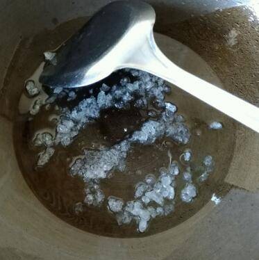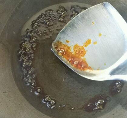锅入油烧热,放入冰糖,小火烧至冰糖化开。
