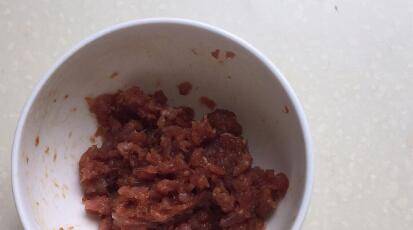 瘦肉剁碎,加入少许酱油、盐、淀粉、橄榄油搅拌均匀备用。