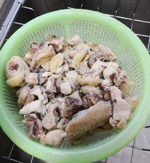 三黄鸡焯血水,洗净。