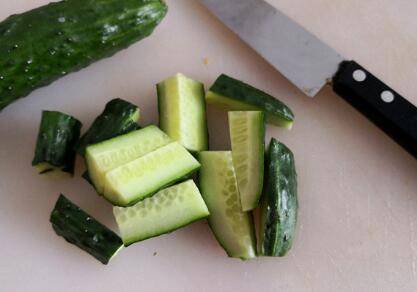 2、黄瓜切成一寸长的段。