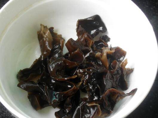 2、木耳泡发后,清洗干净撕小朵。