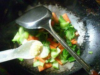 5、接着,合入切好的胡萝卜翻炒翻炒至断生。