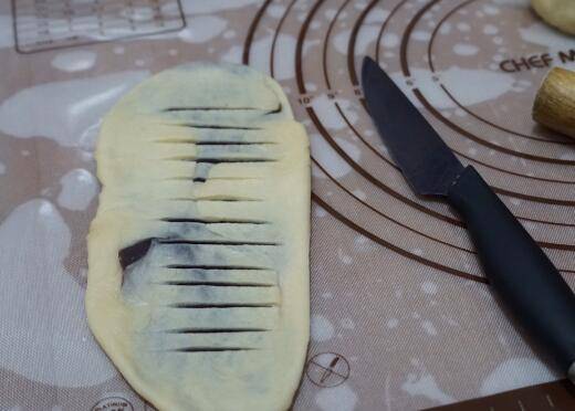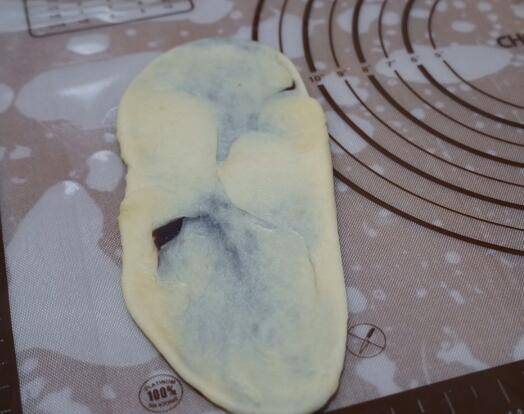 用料:高筋面粉160克、低筋面粉40克、酵母3克、奶粉7克、白砂糖40克、纯牛奶80克、黄油25克、盐2克、豆沙180克、小鸡蛋1个。