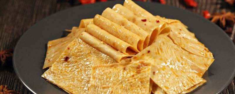豆皮是在制作豆腐时,豆浆上的一层皮,用竿子挑下来,晾晒即可,是广大人名群众的智慧。明末清初京城有一位御厨因战乱流落到应城三合,此地泉水清澈甘甜,就用宫廷配方酿制出豆皮,感觉味道不错,就开起了小作坊专卖豆皮。