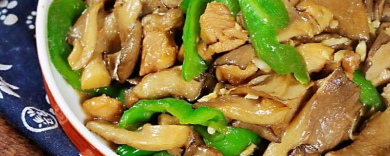 鸡腿肉500g、平菇500g、小青椒和红辣椒各2条、蒜头和姜各一块、生抽、盐、白胡椒粉适量、猪油适量。