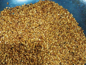 炒至大米金黄,凉后即可开吃。