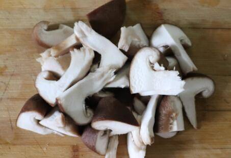 香菇洗净,切成小块,小油菜洗干净,切成小块。