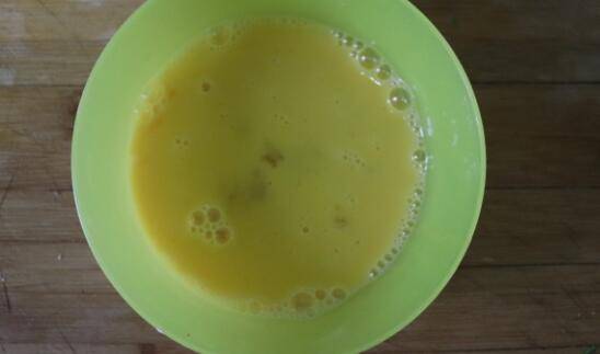 香肠切片,鸡蛋打入碗中,搅打均匀。