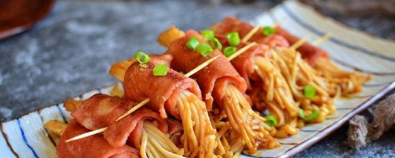 用料:金针菇350克、培根6片、生抽3勺、蚝油1勺、盐半勺、白糖半勺、淀粉半勺、清水3勺、黄油15克。