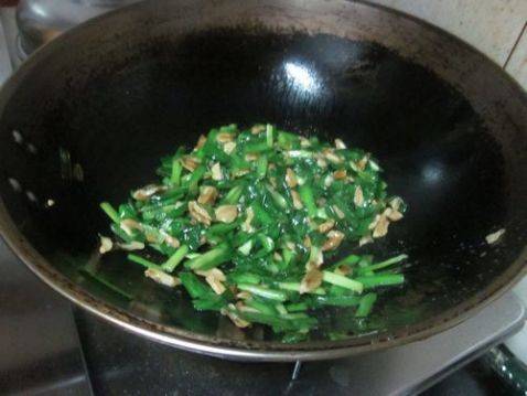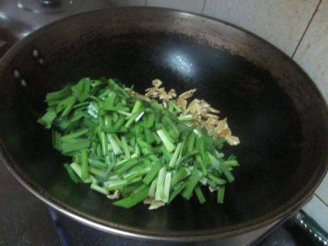 1、准备材料:韭菜250g、核桃仁150g、食盐适量、调和油适量。