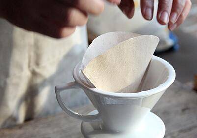 3、将滤纸折叠边缘,放入滤杯。