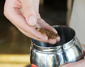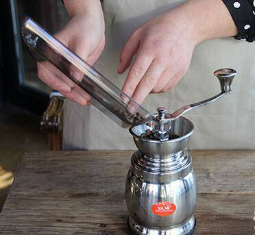 1、秤称出25克咖啡豆,倒入研磨器研磨。