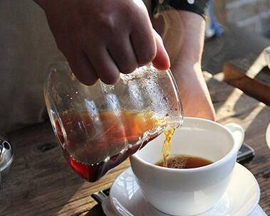 7、咖啡豆的香气会随着水流慢慢散发出来,将滴漏下来的水倒入咖啡杯中即可。