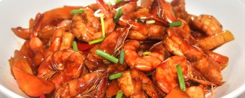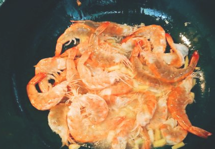锅内放油、加大蒜炒出香味,加入腌制好的基围虾,大火翻炒两分钟,加入生抽翻炒均匀装盘。