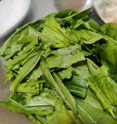 油麦菜1把、大蒜3粒、盐适量、花生油适量、鸡精适量。