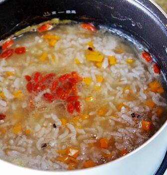 加入洗干净的枸杞子,再煮一分钟关火。