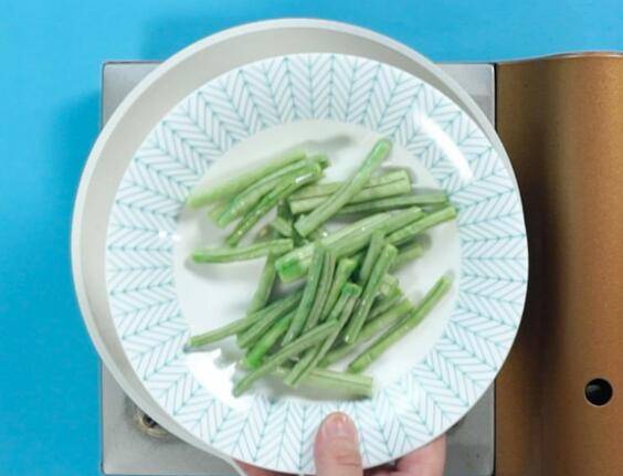 倒入豆角,翻炒均匀;