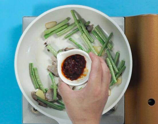 最佳答案准备食材:豆角200克、猪肉50克、食用油3毫升、大蒜1瓣 、姜片3克、辣椒适量、花椒1克、豆瓣酱5克、生抽3克、白砂糖3克、盐2克、鸡粉3克。倒入食用油、蒜、姜,大火爆香;放入花椒,倒入猪肉片,翻炒至变色;倒入豆角,翻炒均匀;放入豆瓣酱、生抽、白砂糖、盐,鸡粉;倒入辣椒,翻炒均匀即可。
