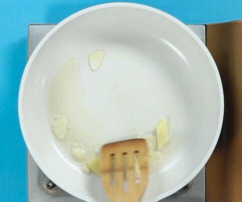 倒入食用油、蒜、姜,大火爆香;