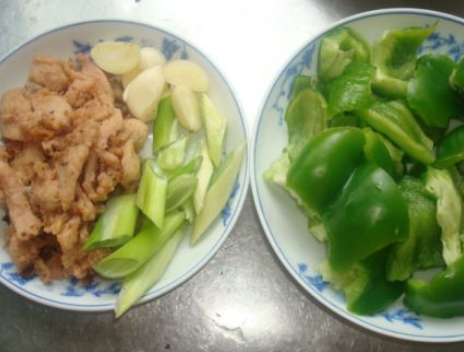 将青椒、鸡胸肉切片备用;