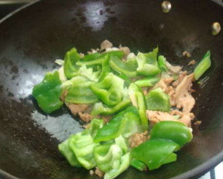 放入青椒翻炒2分钟,并加入适量的调味料翻炒均匀即可出锅。