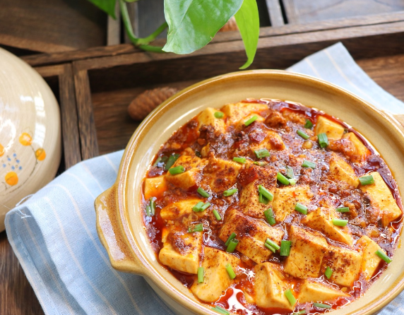 三、麻婆豆腐。1、准备食材:嫩豆腐1块、肉末100g、葱2根、蒜3瓣、姜1片、老抽半勺、郫县豆瓣酱2勺、胡椒粉半勺、糖1小勺、花椒适量、花椒粉适量、清水2小碗、水淀粉少许。