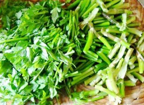 水芹洗净、切小段。