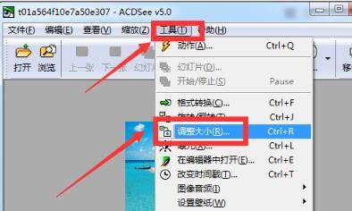 打开了图片之后,在导航栏里面点击工具,并在弹出的下拉菜单栏中选择调整大小这个选项进入。