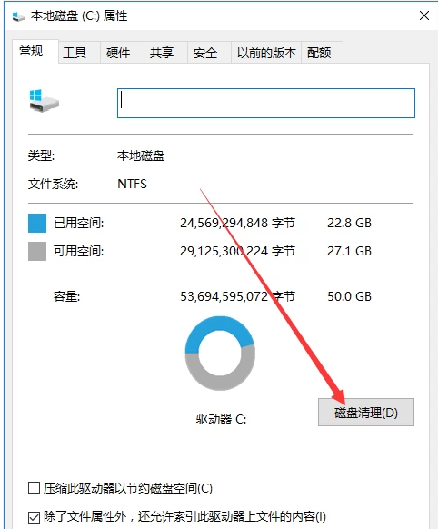 2、找到C盘,右击选择属性,再点击磁盘清理。