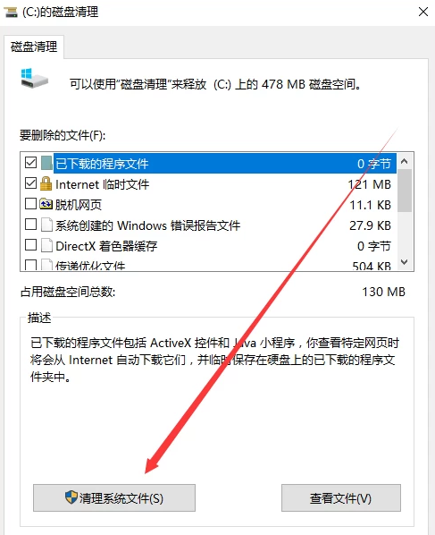 3、点击清理系统文件,在前面打上勾后,点击确定即可。